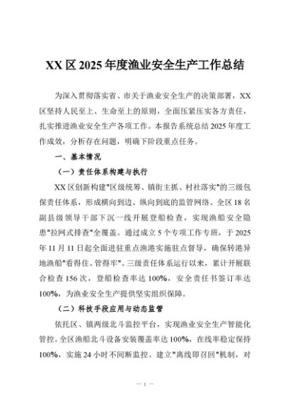 / 【七哥公文】2025年:XX区2025年度渔业安全生产工作总结+更多免费公文+VX:QiGeGongWen2024