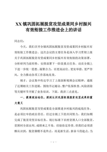 【七哥公文】2025年:XX镇巩固拓展脱贫攻坚成果同乡村振兴有效衔接工作推进会上的讲话+更多免费公文+VX:QiGeGongWen2024