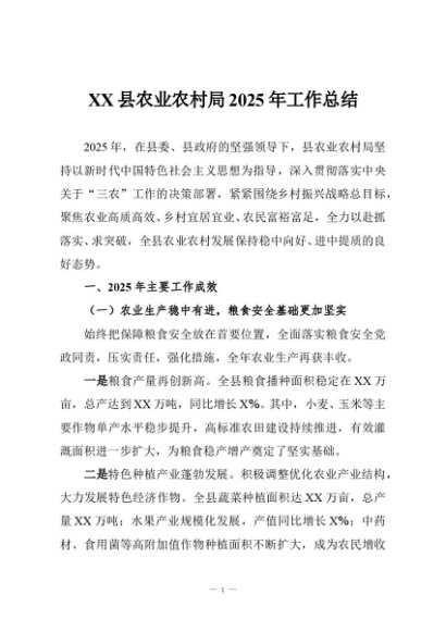 / 【七哥公文】2025年:XX县农业农村局2025年工作总结+更多免费公文+VX:QiGeGongWen2024