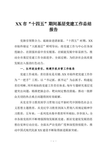 / 【七哥公文】2025年:XX市“十四五”期间基层党建工作总结报告+更多免费公文+VX:QiGeGongWen2024