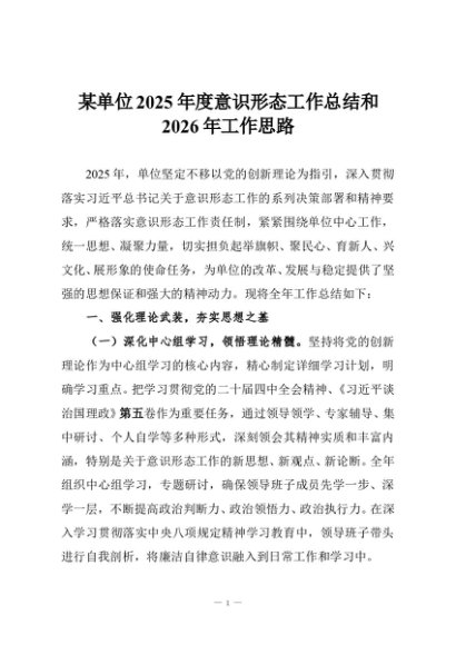 【七哥公文】2025年:某单位2025年度意识形态工作总结和2026年工作思路+更多免费公文+VX:QiGeGongWen2024