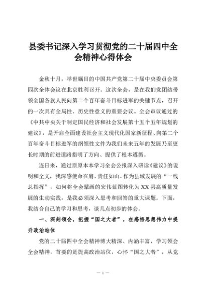 【七哥公文】2025年:县委书记深入学习贯彻党的二十届四中全会精神心得体会+更多免费公文+VX:QiGeGongWen2024