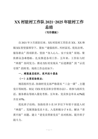/ 【七哥公文】2025年:XX村驻村工作队2021-2025年驻村工作总结+更多免费公文+VX:QiGeGongWen2024