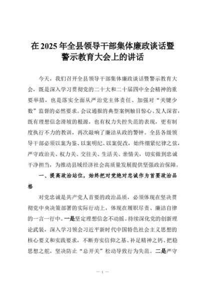 【七哥公文】2025年:在2025年全县领导干部集体廉政谈话暨警示教育大会上的讲话+更多免费公文+VX:QiGeGongWen2024
