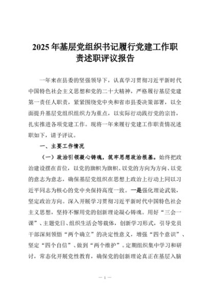 【七哥公文】2025年:2025年基层党组织书记履行党建工作职责述职评议报告+更多免费公文+VX:QiGeGongWen2024