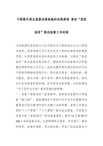 【七哥公文】2025年:不断提升国企监督治理效能的实践探索 落实“室组地巡”联动监督工作机制_副本+更多免费公文+VX:QiGeGongWen2024