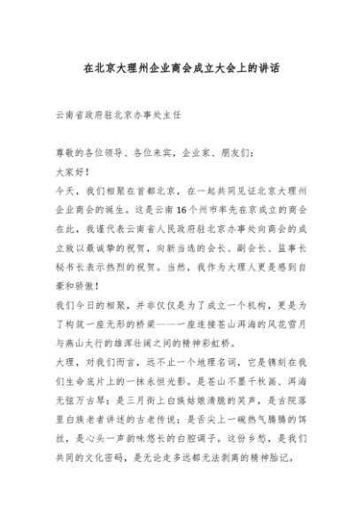 / 【七哥公文】2025年:在北京大理州企业商会成立大会上的讲话_副本+更多免费公文+VX:QiGeGongWen2024