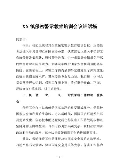 / 【七哥公文】2025年:XX镇保密警示教育培训会议讲话稿+更多免费公文+VX:QiGeGongWen2024