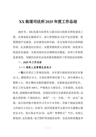 / 【七哥公文】2025年:XX街道司法所2025年度工作总结+更多免费公文+VX:QiGeGongWen2024