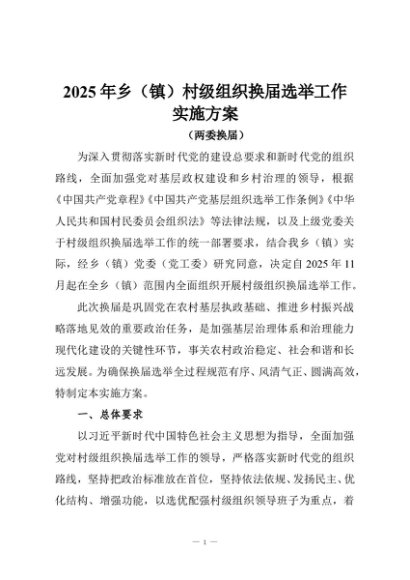 / 【七哥公文】2025年:2025年乡(镇)村级组织换届选举工作实施方案+更多免费公文+VX:QiGeGongWen2024