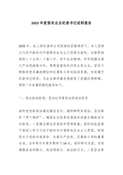 / 【七哥公文】2025年:2025年度国有企业纪委书记述职报告_副本+更多免费公文+VX:QiGeGongWen2024