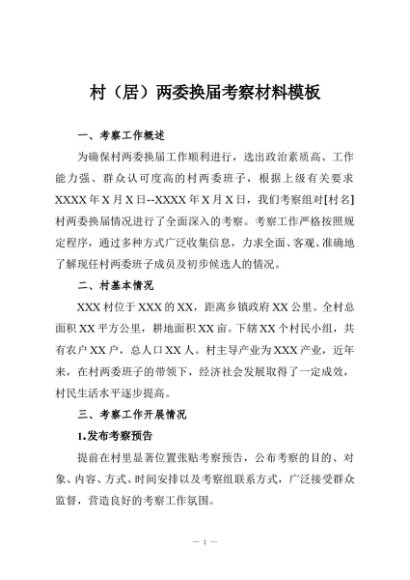 / 【七哥公文】2025年:村(居)两委换届考察材料模板+更多免费公文+VX:QiGeGongWen2024