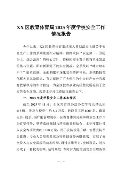 / 【七哥公文】2025年:XX区教育体育局2025年度学校安全工作情况报告+更多免费公文+VX:QiGeGongWen2024