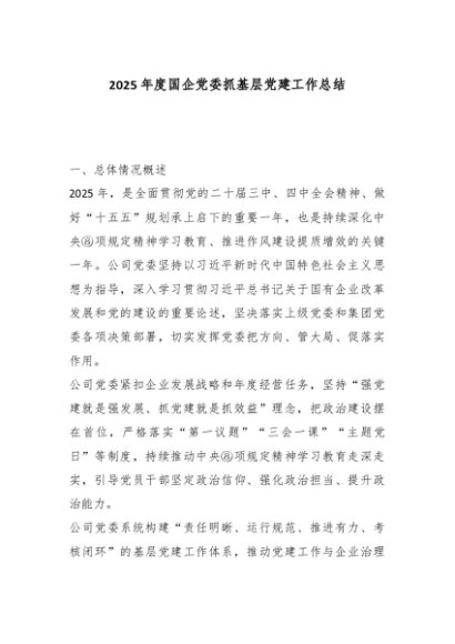 / 【七哥公文】2025年:2025年度国企党委抓基层党建工作总结_副本+更多免费公文+VX:QiGeGongWen2024