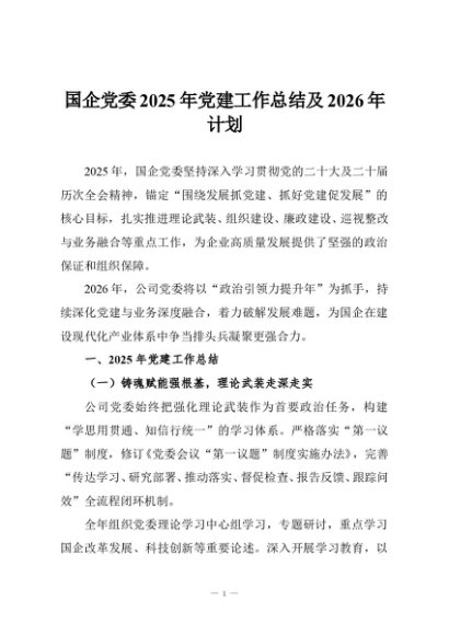 / 【七哥公文】2025年:国企党委2025年党建工作总结及2026年计划+更多免费公文+VX:QiGeGongWen2024