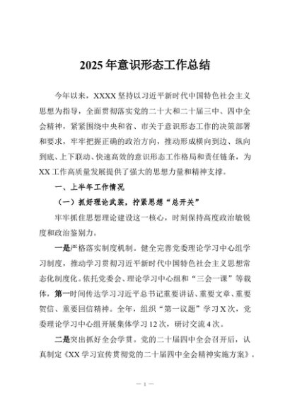 / 【七哥公文】2025年:2025年意识形态工作总结+更多免费公文+VX:QiGeGongWen2024
