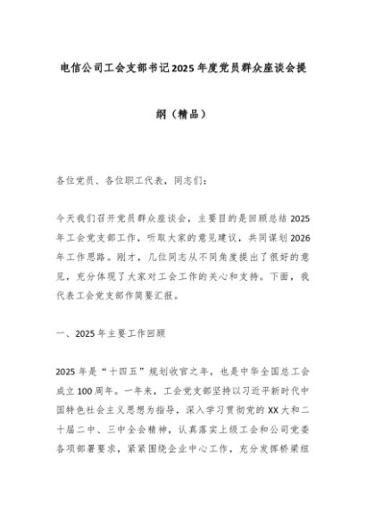 【七哥公文】2025年:电信公司工会支部书记2025年度党员群众座谈会提纲(精品)_副本+更多免费公文+VX:QiGeGongWen2024