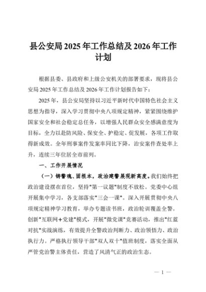/ 【七哥公文】2025年:县公安局2025年工作总结及2026年工作计划+更多免费公文+VX:QiGeGongWen2024