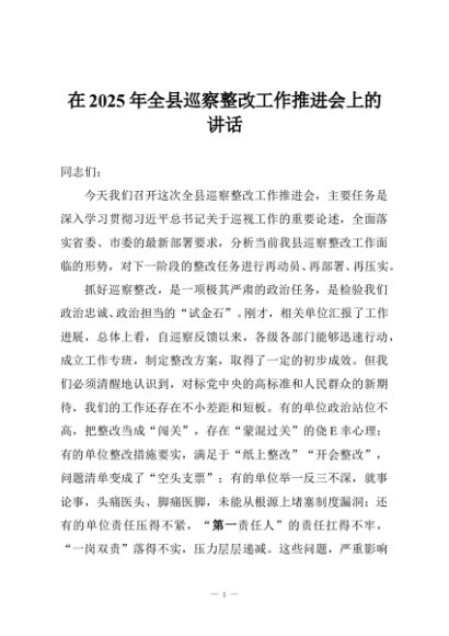 / 【七哥公文】2025年:在2025年全县巡察整改工作推进会上的讲话+更多免费公文+VX:QiGeGongWen2024