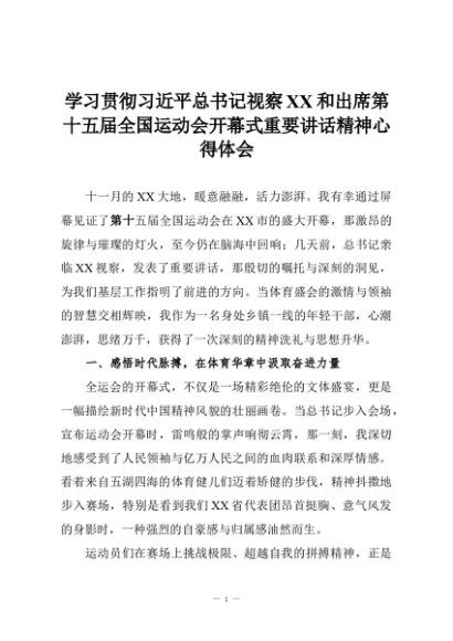 【七哥公文】2025年:学习贯彻习近平总书记视察XX和出席第十五届全国运动会开幕式重要讲话精神心得体会+更多免费公文+VX:QiGeGongWen2024
