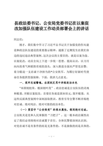 【七哥公文】2025年:县政法委书记、公安局党委书记在以案促改加强队伍建设工作动员部署会上的讲话+更多免费公文+VX:QiGeGongWen2024