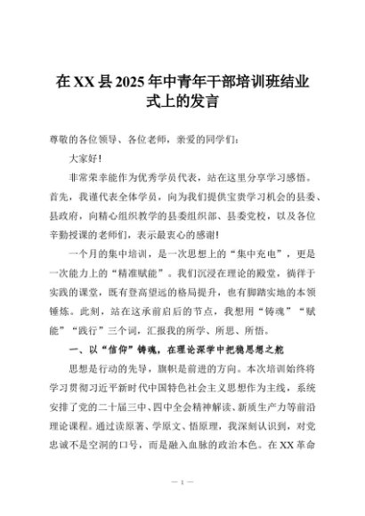/ 【七哥公文】2025年:在XX县2025年中青年干部培训班结业式上的发言+更多免费公文+VX:QiGeGongWen2024