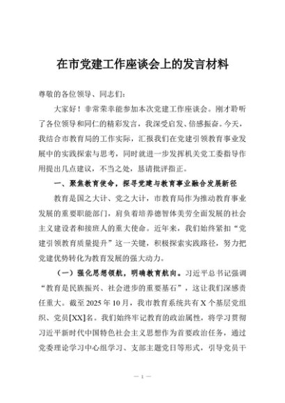 / 【七哥公文】2025年:在市党建工作座谈会上的发言材料+更多免费公文+VX:QiGeGongWen2024