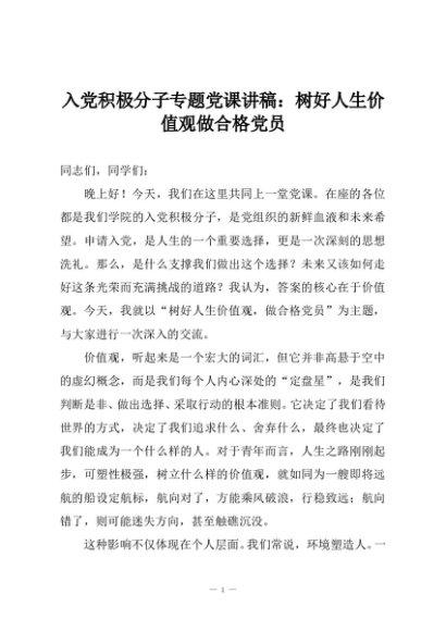 【七哥公文】2025年:入党积极分子专题党课讲稿:树好人生价值观做合格党员+更多免费公文+VX:QiGeGongWen2024