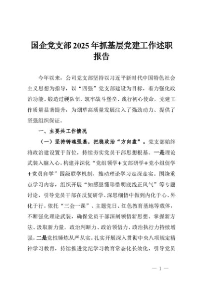 / 【七哥公文】2025年:国企党支部2025年抓基层党建工作述职报告+更多免费公文+VX:QiGeGongWen2024