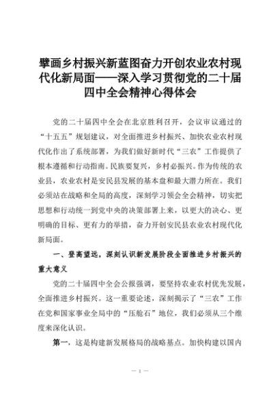 【七哥公文】2025年:擘画乡村振兴新蓝图奋力开创农业农村现代化新局面——深入学习贯彻党的二十届四中全会精神心得体会+更多免费公文+VX:QiGeGongWen2024