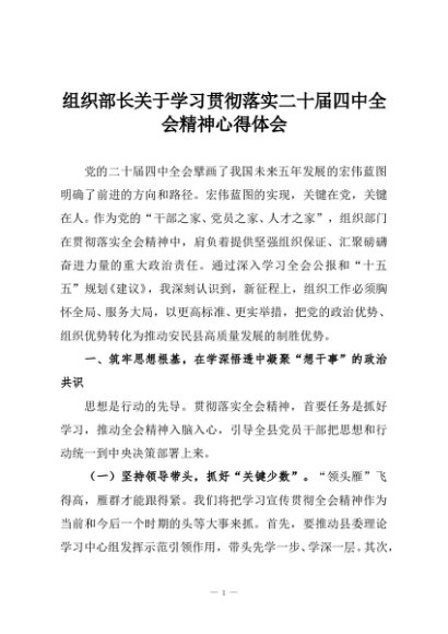 【七哥公文】2025年:组织部长关于学习贯彻落实二十届四中全会精神心得体会+更多免费公文+VX:QiGeGongWen2024