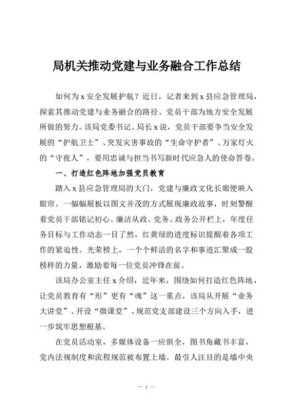 / 【七哥公文】2025年:局机关推动党建与业务融合工作总结+更多免费公文+VX:QiGeGongWen2024