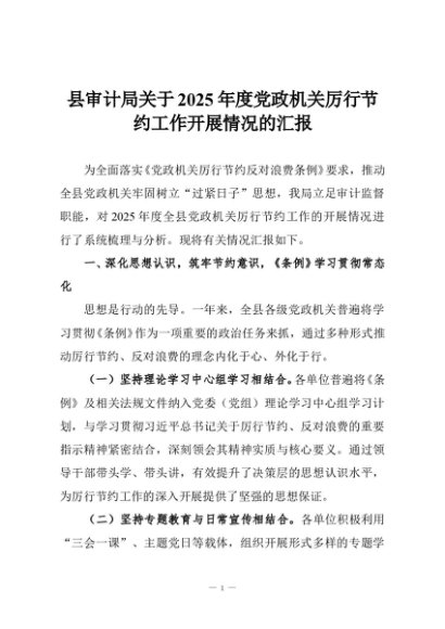 【七哥公文】2025年:县审计局关于2025年度党政机关厉行节约工作开展情况的汇报+更多免费公文+VX:QiGeGongWen2024