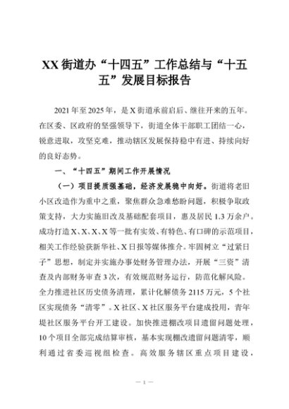 【七哥公文】2025年:XX街道办“十四五”工作总结与“十五五”发展目标报告+更多免费公文+VX:QiGeGongWen2024
