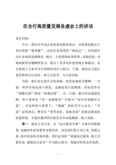 / 【七哥公文】2025年:在全行高质量发展务虚会上的讲话+更多免费公文+VX:QiGeGongWen2024