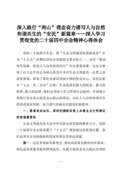 【七哥公文】2025年:深入践行“两山”理念奋力谱写人与自然和谐共生的“安民”新篇章——深入学习贯彻党的二十届四中全会精神心得体会+更多免费公文+VX:QiGeGongWen2024