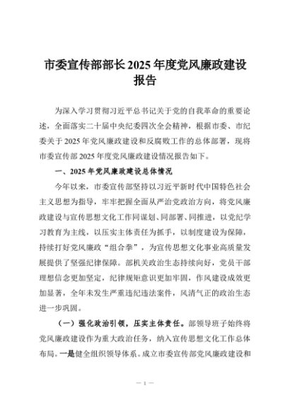 / 【七哥公文】2025年:市委宣传部部长2025年度党风廉政建设报告+更多免费公文+VX:QiGeGongWen2024