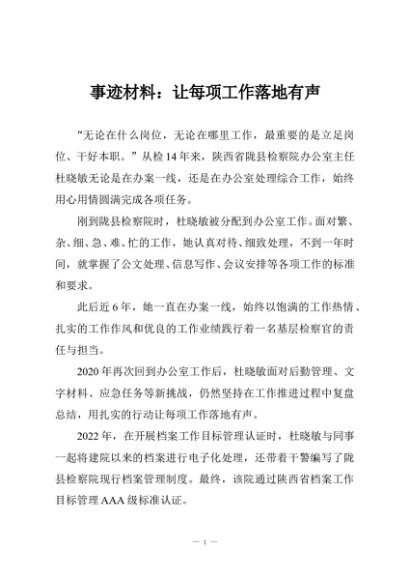 【七哥公文】2025年:事迹材料:让每项工作落地有声+更多免费公文+VX:QiGeGongWen2024