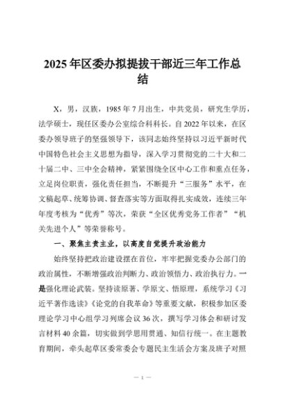 / 【七哥公文】2025年:2025年区委办拟提拔干部近三年工作总结+更多免费公文+VX:QiGeGongWen2024