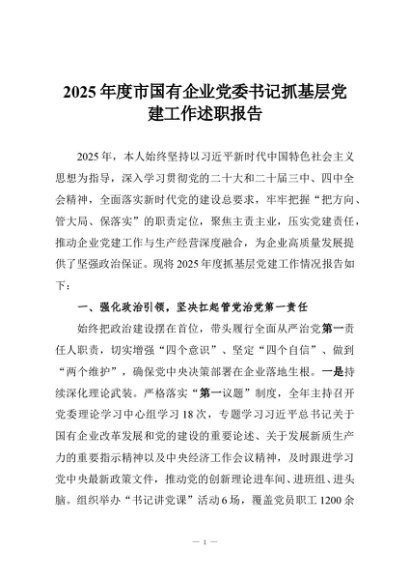 【七哥公文】2025年:2025年度市国有企业党委书记抓基层党建工作述职报告+更多免费公文+VX:QiGeGongWen2024