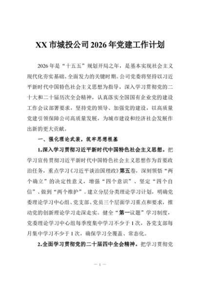 / 【七哥公文】2025年:XX市城投公司2026年党建工作计划+更多免费公文+VX:QiGeGongWen2024