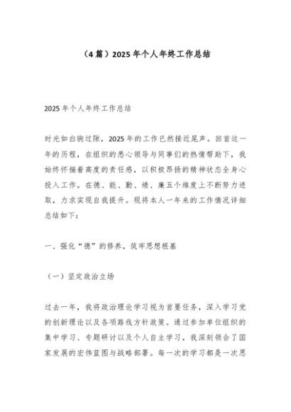 / 【七哥公文】2025年:(4篇)2025年个人年终工作总结+更多免费公文+VX:QiGeGongWen2024