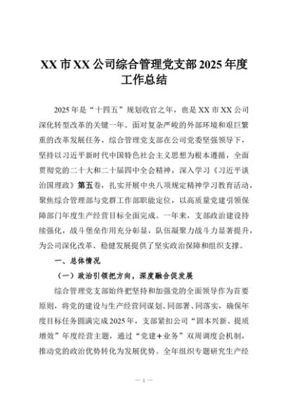 / 【七哥公文】2025年:XX市XX公司综合管理党支部2025年度工作总结+更多免费公文+VX:QiGeGongWen2024