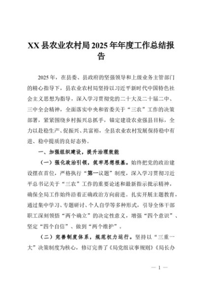 / 【七哥公文】2025年:XX县农业农村局2025年年度工作总结报告+更多免费公文+VX:QiGeGongWen2024