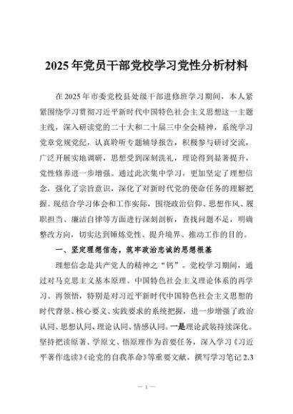 / 【七哥公文】2025年:2025年党员干部党校学习党性分析材料+更多免费公文+VX:QiGeGongWen2024