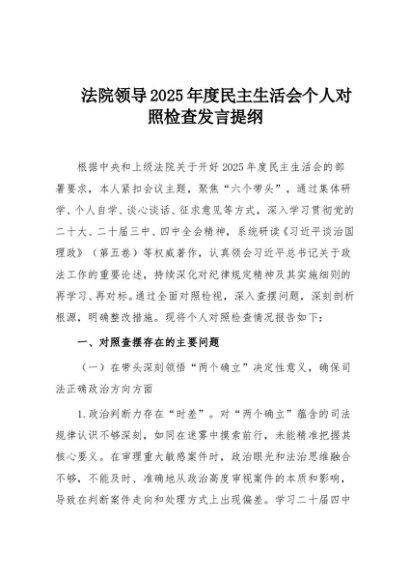 【七哥公文】2025年:法院领导2025年度民主生活会个人对照检查发言提纲+更多免费公文+VX:QiGeGongWen2024