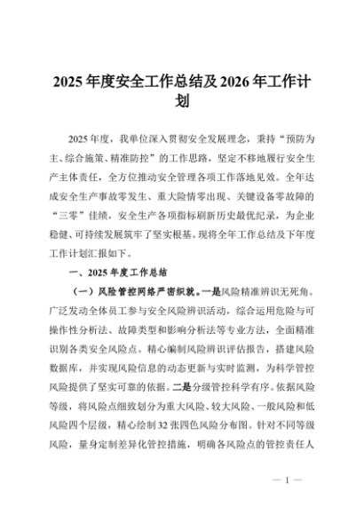 / 【七哥公文】2025年:2025年度安全工作总结及2026年工作计划+更多免费公文+VX:QiGeGongWen2024