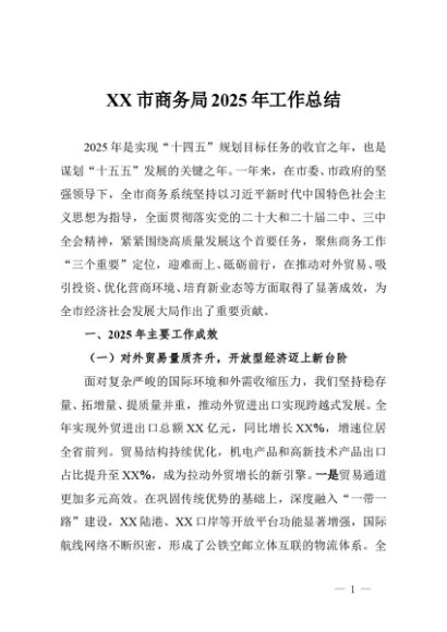 / 【七哥公文】2025年:XX市商务局2025年工作总结+更多免费公文+VX:QiGeGongWen2024