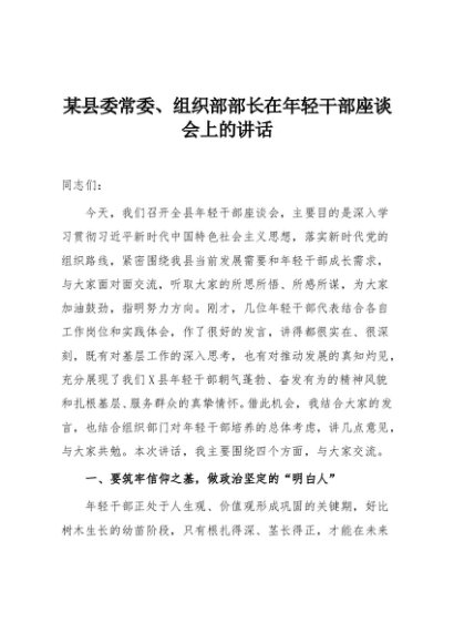 / 【七哥公文】2025年:某县委常委、组织部部长在年轻干部座谈会上的讲话+更多免费公文+VX:QiGeGongWen2024