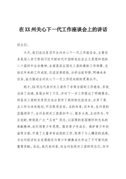 【七哥公文】2025年:在XX州关心下一代工作座谈会上的讲话+更多免费公文+VX:QiGeGongWen2024